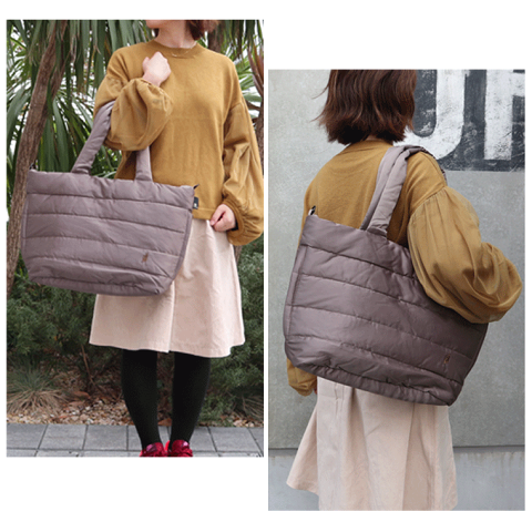 【サイズ】 横(上部)50cm、高さ30cm、幅16cm、持ち手長さ55cm 【素材】 マットブラック,マットダークベージュ:表地&持ち手/ポリエステル,ポリウレタン、裏地/ポリエステル エッグプラント,カーキ,ピンク,シルバー:表地&持ち手/ナイロン、裏地/ポリエステル 本体:中わた/ダウン,フェザー 口元:ファスナー 【ポケット】 外側2箇所(両側ともファスナー付き)、内側3箇所(うちファスナー付き1箇所) 【重量】 約320g(製造メーカー記載値) ※素材差および若干の個体差がございますのでご了承ください。